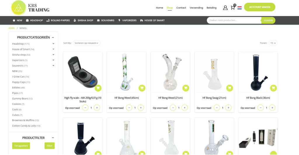 Welkom bij KRS Trading, dé groothandel voor shishas, vaporizers, headshopproducten en meer! Ontdek ons uitgebreide assortiment hoogwaardige rook- en vapewaren, samengesteld om aan de behoeften van zowel beginnende als ervaren liefhebbers te voldoen. Van traditionele tot moderne shishas, geavanceerde vaporizers tot trendy headshopaccessoires – wij bieden het allemaal.